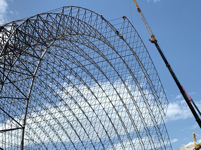 (2)网架加工前应对现场尺寸进行复测,确认无误后方可进行加工、安装;网架制作、运输、安装应遵守《空间网格结构技术规程》JGJ7-2010、《钢网架巢湖螺栓球节点》JG/T 10-2009、《钢网架巢湖螺栓球节点用高强度螺栓》 GB/T 16939-2016、《巢湖钢结构巢湖工程巢湖施工规范》 GB50755-2012、《巢湖钢结构巢湖工程施工质量验收标准》 GB50205-2020。